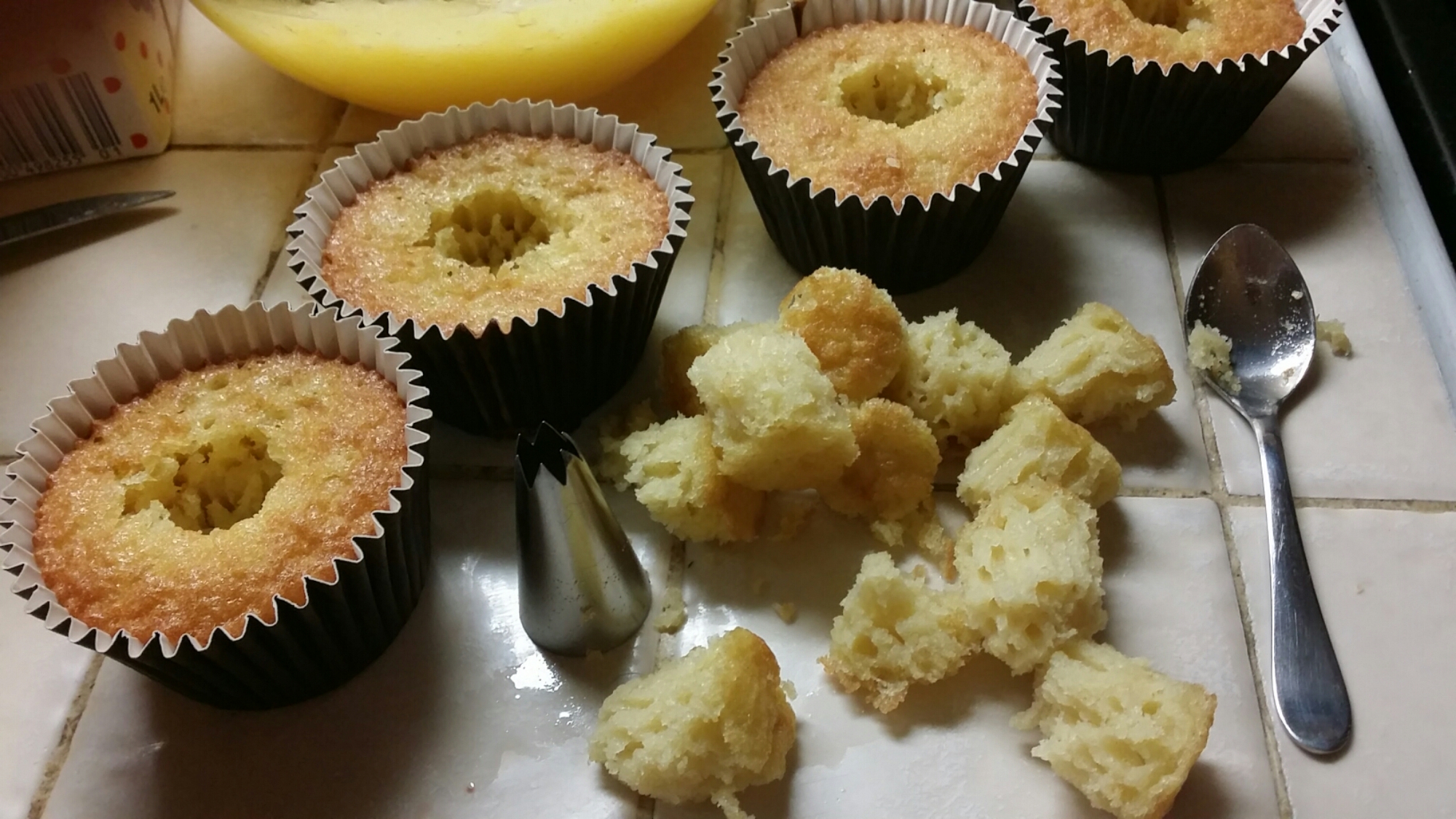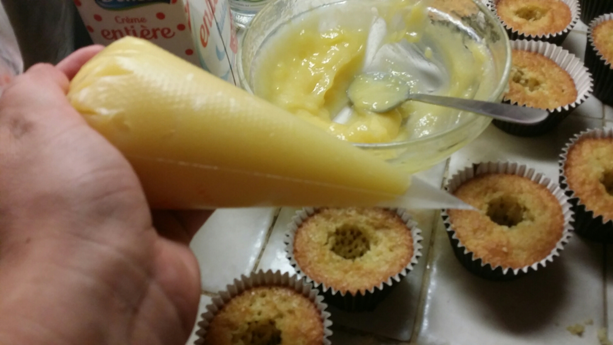 Creuser les cupcakes ( j’ai utilisé ma grosse douille et une cuillère a café 😉)
