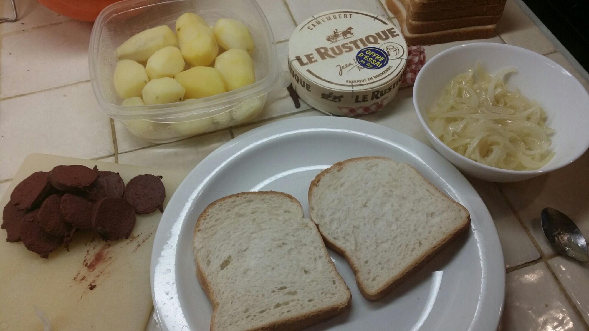 Et là …. miracle que vois je? Un croque monsieur? Mais oui voilà la solution hihihihi bon ok j’ai pas de pomme mais j’ai des pommes de terre 😉