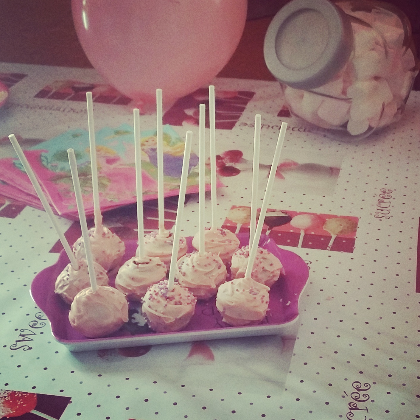 Pour ma princesse partie de la plus grande de  de mes 2 puces je voulais m’essayer ai cake pop ça fait un moment que j’ai le moule mais jamais testé encore.
