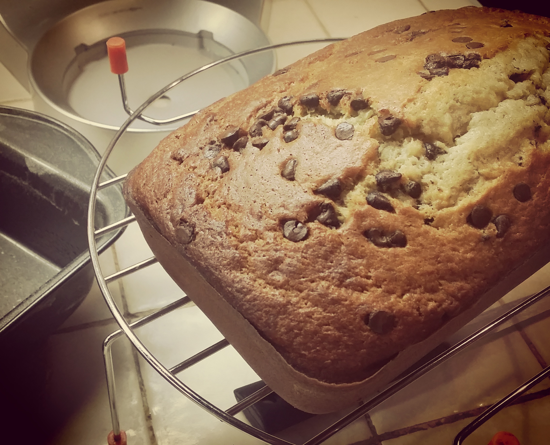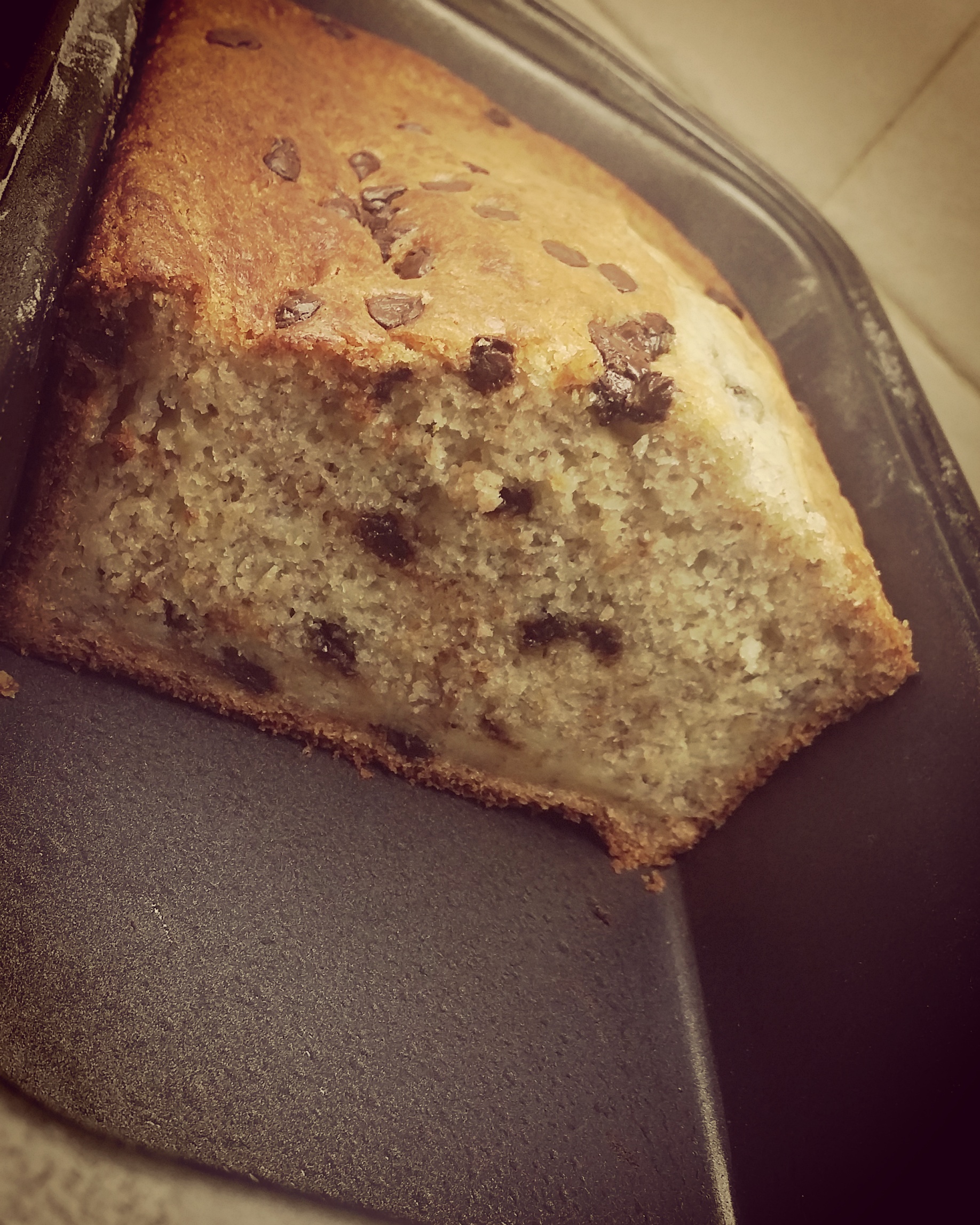 Parsemez de quelques pépites de chocolat sur le dessus et enfournez pour 50 min environ.