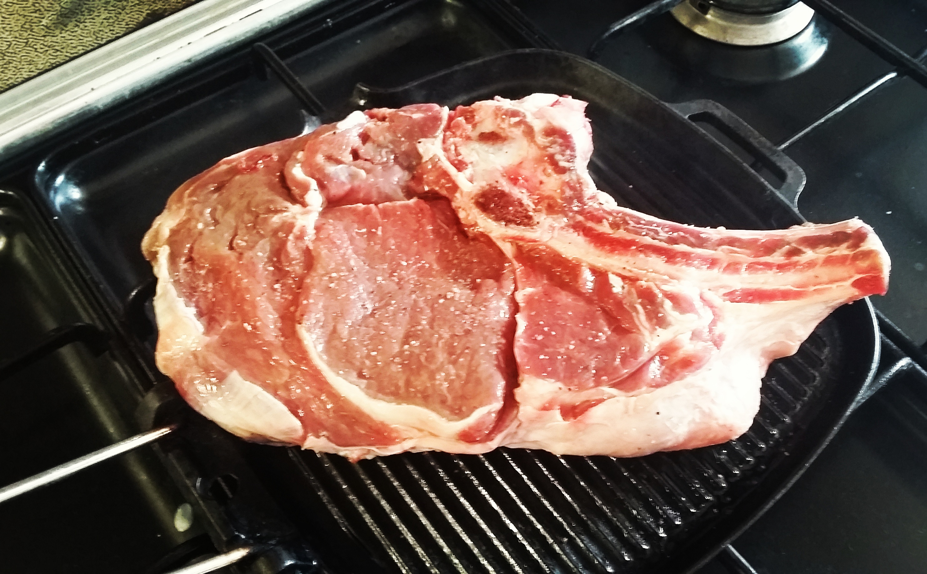 La marquer 3 minutes de chaque côté dans une poêle en fonte bien bien chaude sur feu vif.
