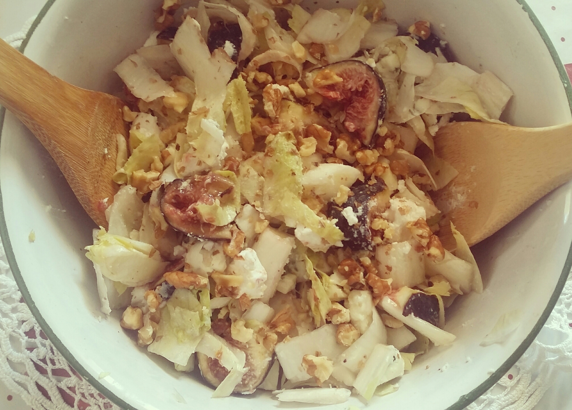 Coupez les figues en deux puis chaque parti en 3 quartiers et les ajouter aux endives.