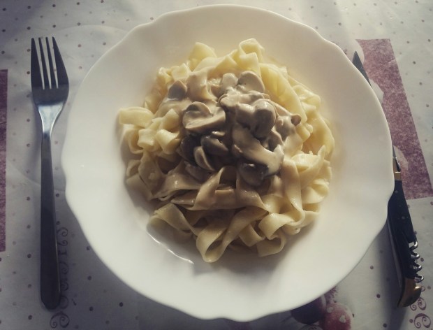 Mes loulous adorent les pâtes surtout a la carbo. aujourd’hui ils m’ont demandé à défaut de lardons de leur faire des pâtes comme la carbo mais au champignons.