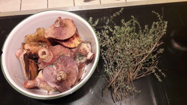 Aujourd’hui elle m’a fait la surprise en revenant de sa sortie cueillette de m’apporter des safranés et un bouquet de thym sauvage hummmmm l’odeur j’adore.