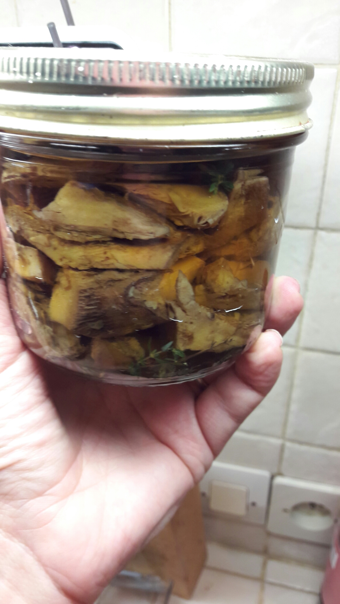 Après les avoir nettoyé je les ai fais cuir puis j’ai utilisé une parti pour notre omelette de ce soir et mis en pot le reste en suivant a la lettre le mode de cuisson de mon amie.