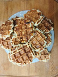 - Prendre une bonne cuillère à soupe de pâte pour chaque gaufre, puis faire cuire au gaufrier