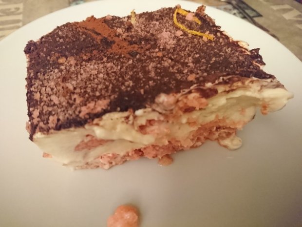 Recouvrir avec le reste du mélange mascarpone. Soupoudrez de cacao sans sucre et décorez avec le reste des zestes. Réduisez en poudre le biscuit mit de côté et en soupoudrez le tiramisu. Ajoutez quelques lamelles d’oranges confites.
