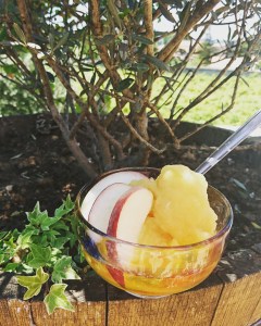Depuis le temps que ce paquet d’infusion saveur pêche Melba parfumait mon placard, je me suis enfin décidée ce matin de le tester en version sorbet. Ideal par cette chaleur aujourd’hui.