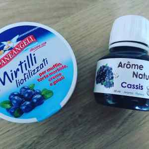 1 càs légèrement bombée de poudre de myrtille déshydraté. Je les ai trouvé chez Paneangeli en Italie mais on en trouve facilement ailleurs et sur le net.