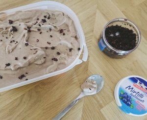 Ne pas mettre la poudre de myrtille dans votre préparation, les réservé pour plus tard. Mettre la préparation dans des bacs à glaçons et une fois congelée mixez le tout. Ajoutez seulement une fois mixer la poudre de myrtille en mélangeant en sans INVERSE avec votre thermomix😉 et pour un effet glace à l’italienne incorporez une fois mixer le fouet avec un blanc d’œuf et battez vit3 pendant 30 sec et voilà y a plus qu’à déguster 😘
