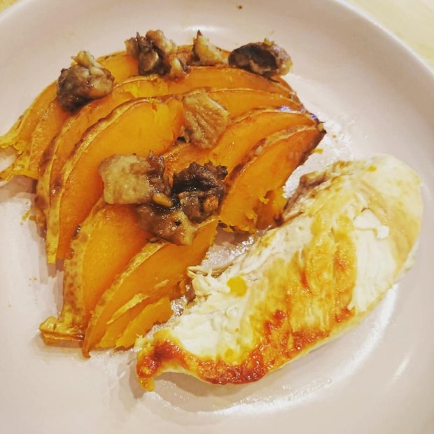 J’ai remplacé et diminué la quantité de miel d’acacia par du miel de châtaigner, les amandes par des châtaignes, le vinaigre de xérès par du balsamique et la fleur de sel par du sel aromatisé garlaban de chez mon partenaire vinaigre le goût