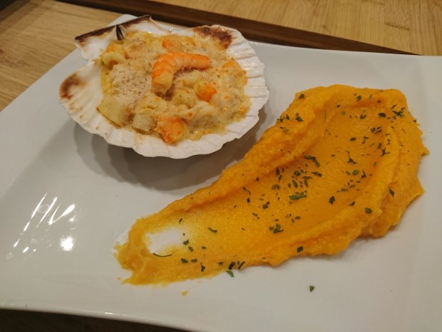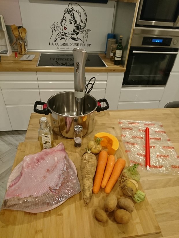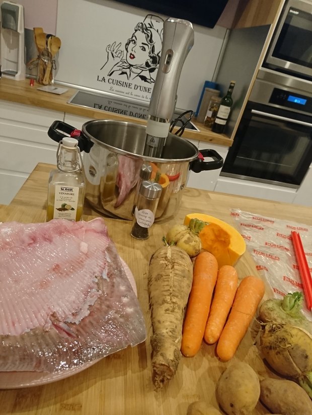 Hier j’ai donc rĂ©alisĂ© des coquilles de la mer a l’aile de raie cuite Ă basse tempĂ©rature au vinaigre de kalamanshi et thĂ© vert matcha et poivre sauvage de Madagascar, crevettes et Saint Jacques avec une sauce safranĂ© Ă la poudre de safran et corail. Le tout accompagnĂ© d’une purĂ©e au lĂ©gumes d’hiver.