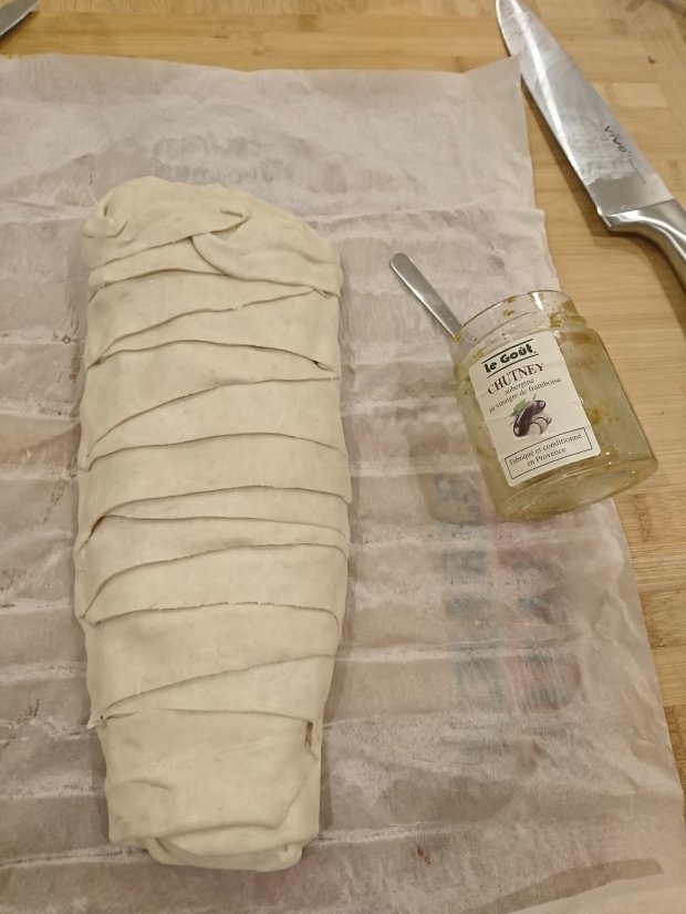 Alors vu que c’est la saison, j’ai eu envie de préparer ce petit feuilleté de filet de lieu noir sauvage avec le chutneys d’aubergine d’Éric mon partenaire vinaigre le Goût
