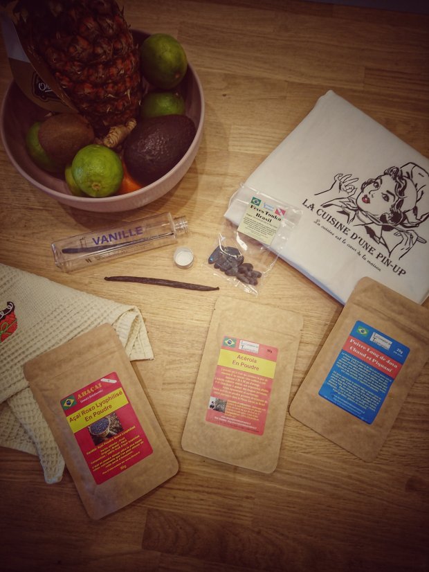 La baie d’Açaï est un fruit connu pour ses nombreuses verts médicales. Elles poussent sur un palmier dans les zones marécageuses de la forêt d’Amazonie. Cet Açaï que j’ai reçu provient d’une plantation pratiquant la reforestation dans l’état de Parà au cœur de la forêt. J’ai l’ai reçu sous forme de poudre. il possède un fort pouvoir anti-oxydant grâce à ses teneurs naturellement riches en polyphénols et en vitamine C. Il présente également une forte teneur en fibres, mais aussi en vitamine E et en Fer.