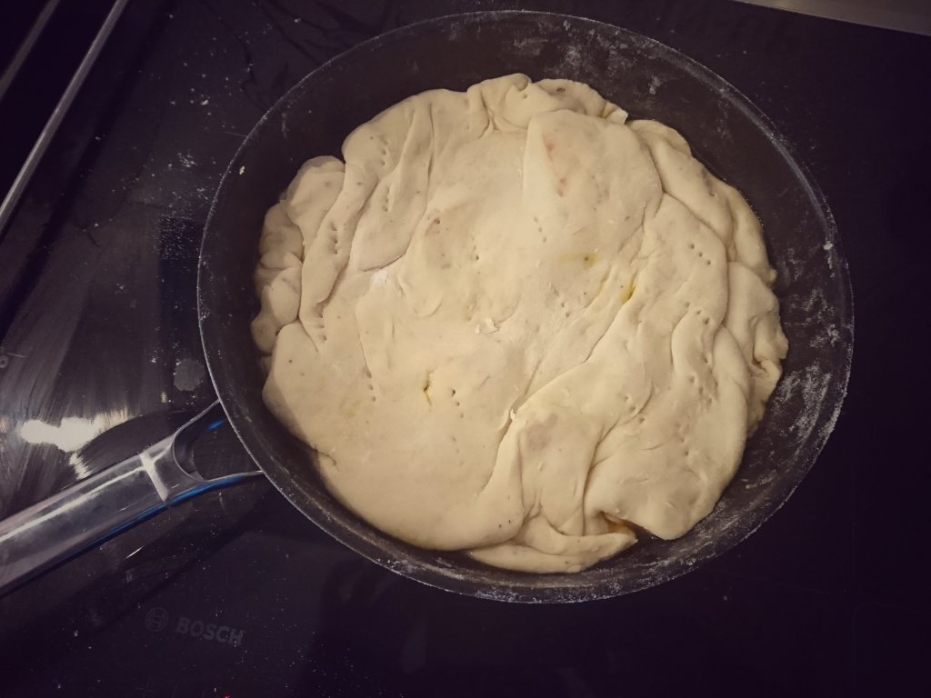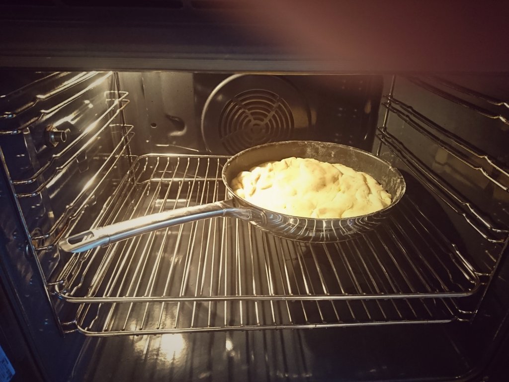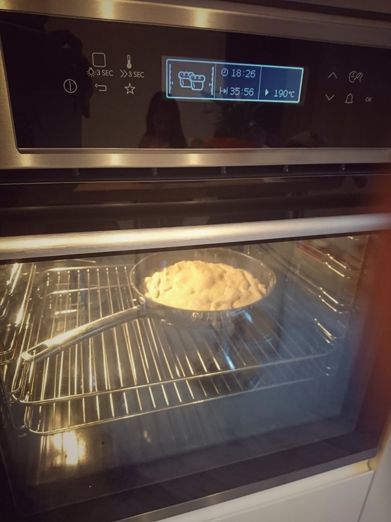 Pour la partie suivante j’ai utilisé une poêle anti adhésive à bord haut allant au four, mais si vous n’en avez pas il vous faudra tout simplement transvaser dans un plat a tarte tatin ou simple a bord haut avant de couvrir avec la pâte.
