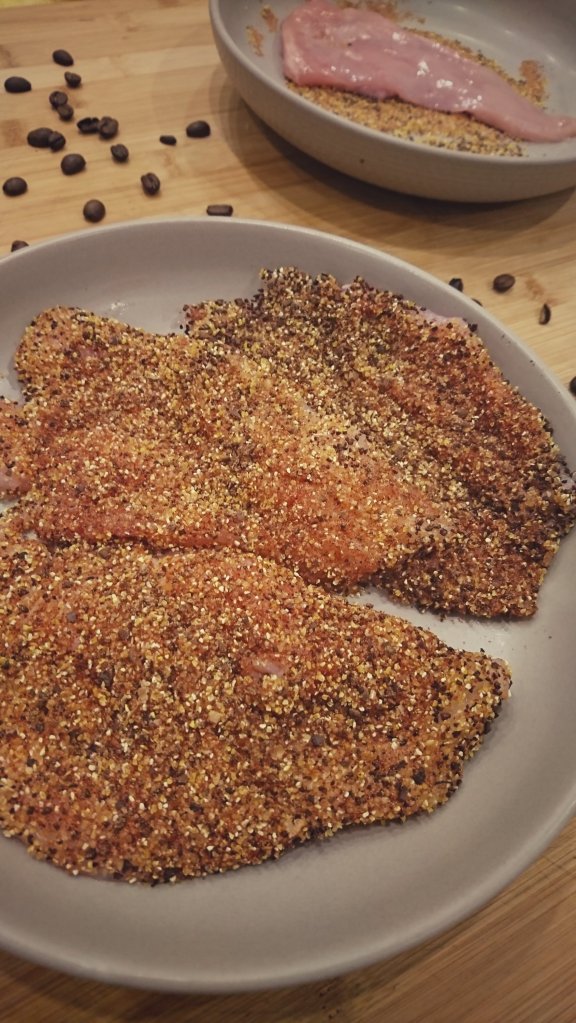 J’aime les recettes insolites réalisées avec des ingrédient du quotidien auxquels on n’aurai pas pensées pour une utilisation autre. Comme le café. On l’utilise dans nos desserts tel que le tiramisu, les glaces, les yaourts, mais très rarement voir jamais en version salée et encore moins sous sa forme d’origine en grain.