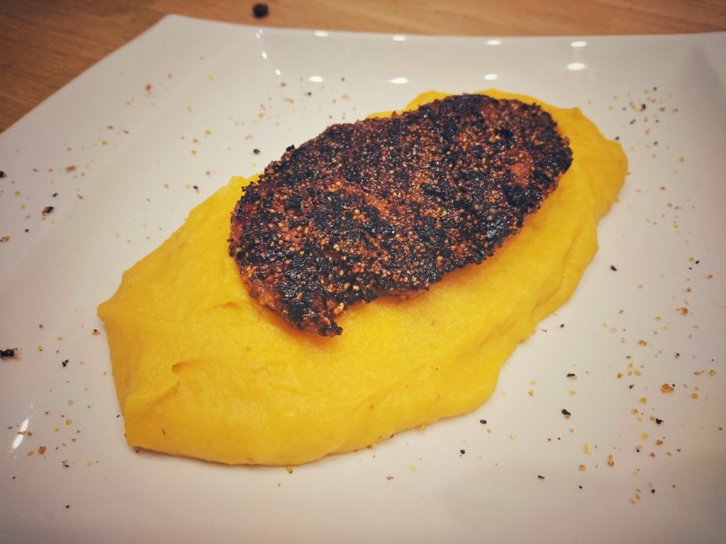 Servez aussitôt. Ici je les ai servi avec une purée de butternut.