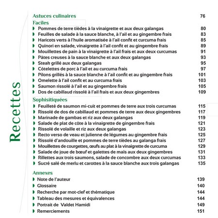 Mais moi je vais vous parler de cet ouvrage, le livre de recettes: « Gingembre, Curcuma, Galanga, 130 façons de les cuisiner«