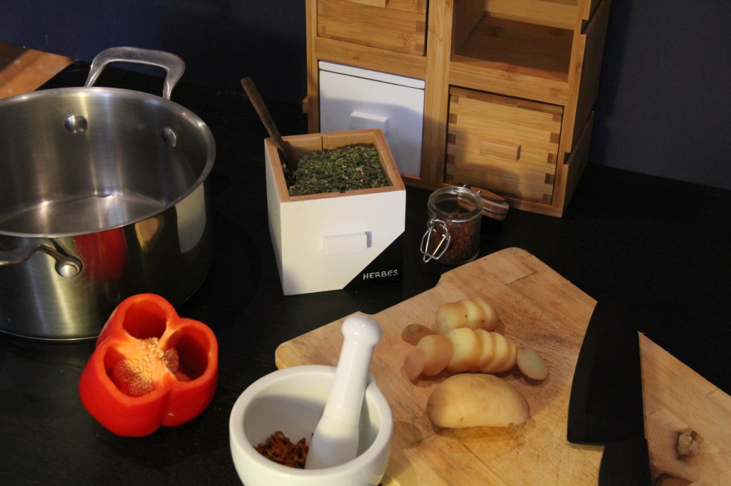 Et bien c’est une boite astucieuse et modulable aussi bien pour y ranger vos épices, herbes, légumineuses, céréales, thé ou encore café. Elle nous permet de toujours les avoir à portée de main dans la cuisine de manière optimisée.