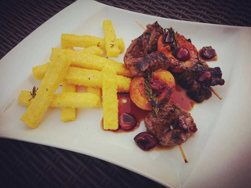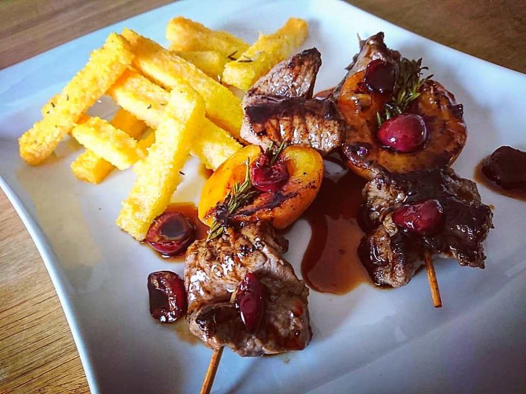 Pour tester ce barbecue Tafelspitz j’ai décidé de réaliser des brochettes de boeufs aux abricots et romarin, ainsi que des frites de polenta.