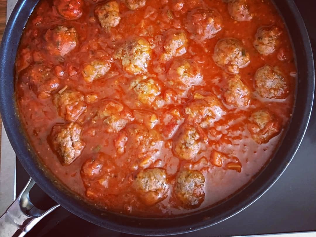 Dans une poêle chaude avec de l’huile d’olive les faire revenir quelques minutes de tous les côtés puis à feu doux ajoutez la sauce. Faire mijoter le temps de chauffer votre four à 180°c