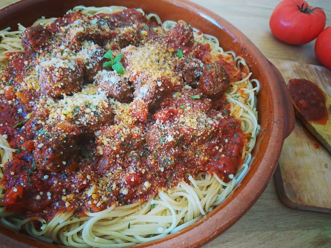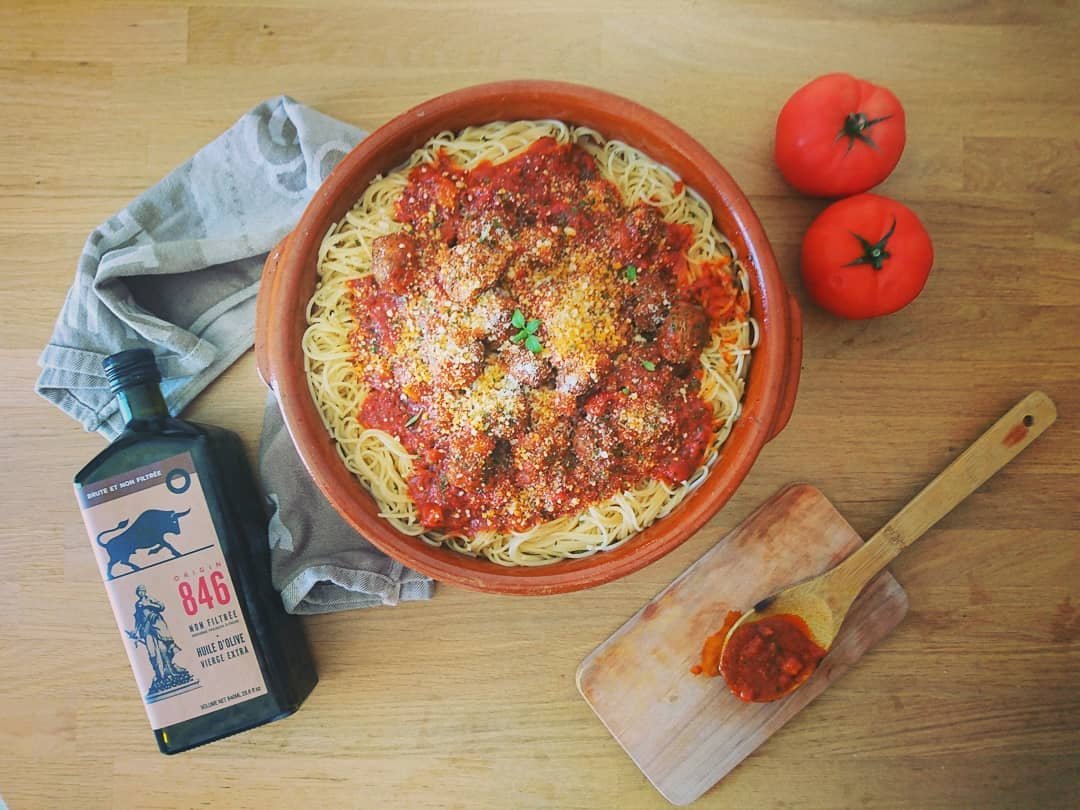 Elle a donc choisi de déguster pour le repas du midi des spaghettis sauce napolitaine (bon j’ai triché la sauce n’est pas de moi 😅) aux boulettes de boeufs maison (ça c’est moi qui les ai fait 😁)