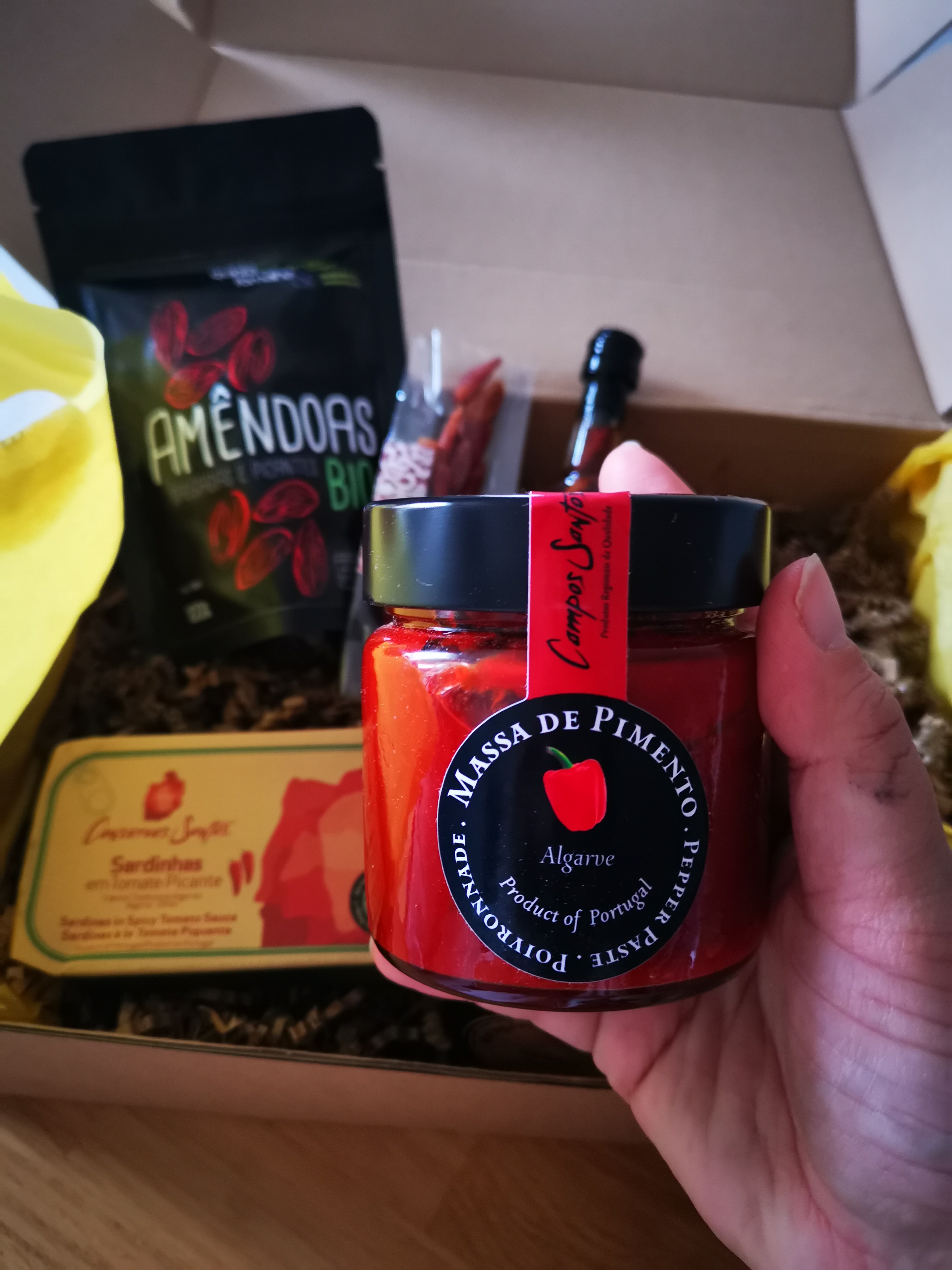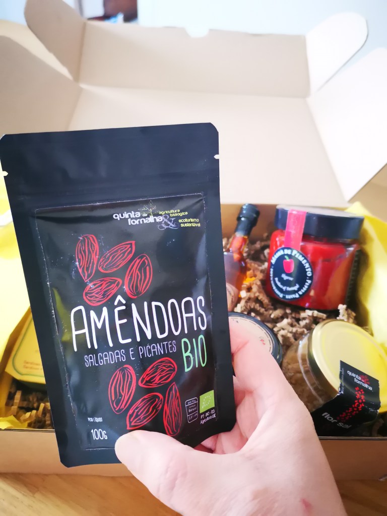 – d’un sachet d’amandes torrĂ©fiĂ©es et salĂ©es Ă la fleur de sel d’Algarve aux piments Piri-Piri.