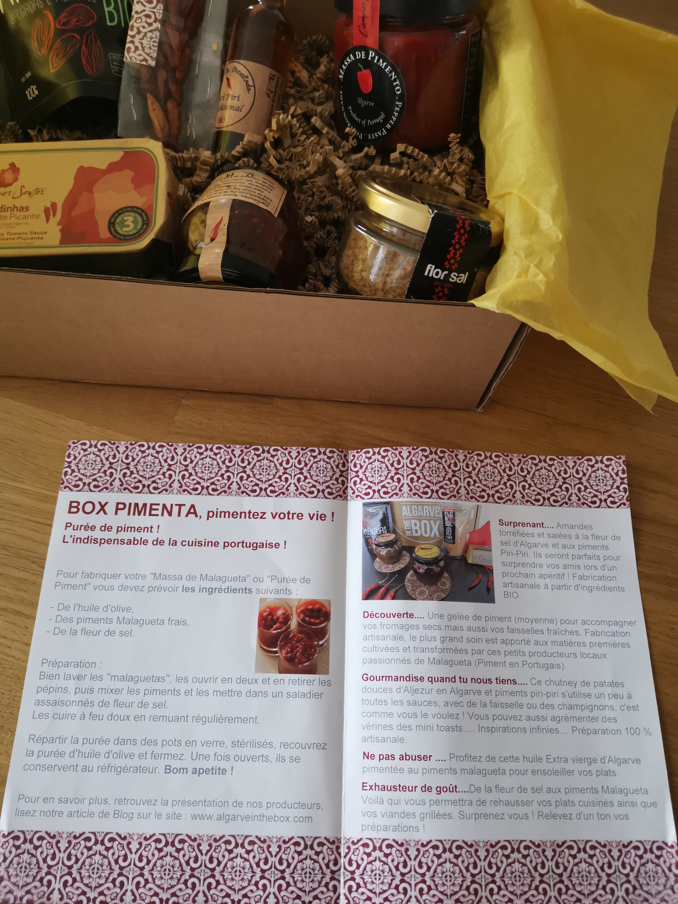Cette box est sur le thĂšme du piment. Elle nous emmĂšne voyager au sud du Portugal oĂč le soleil brille 300 jours par an (un tout petit peu plus que chez nous dans le Var quoi đ đ)