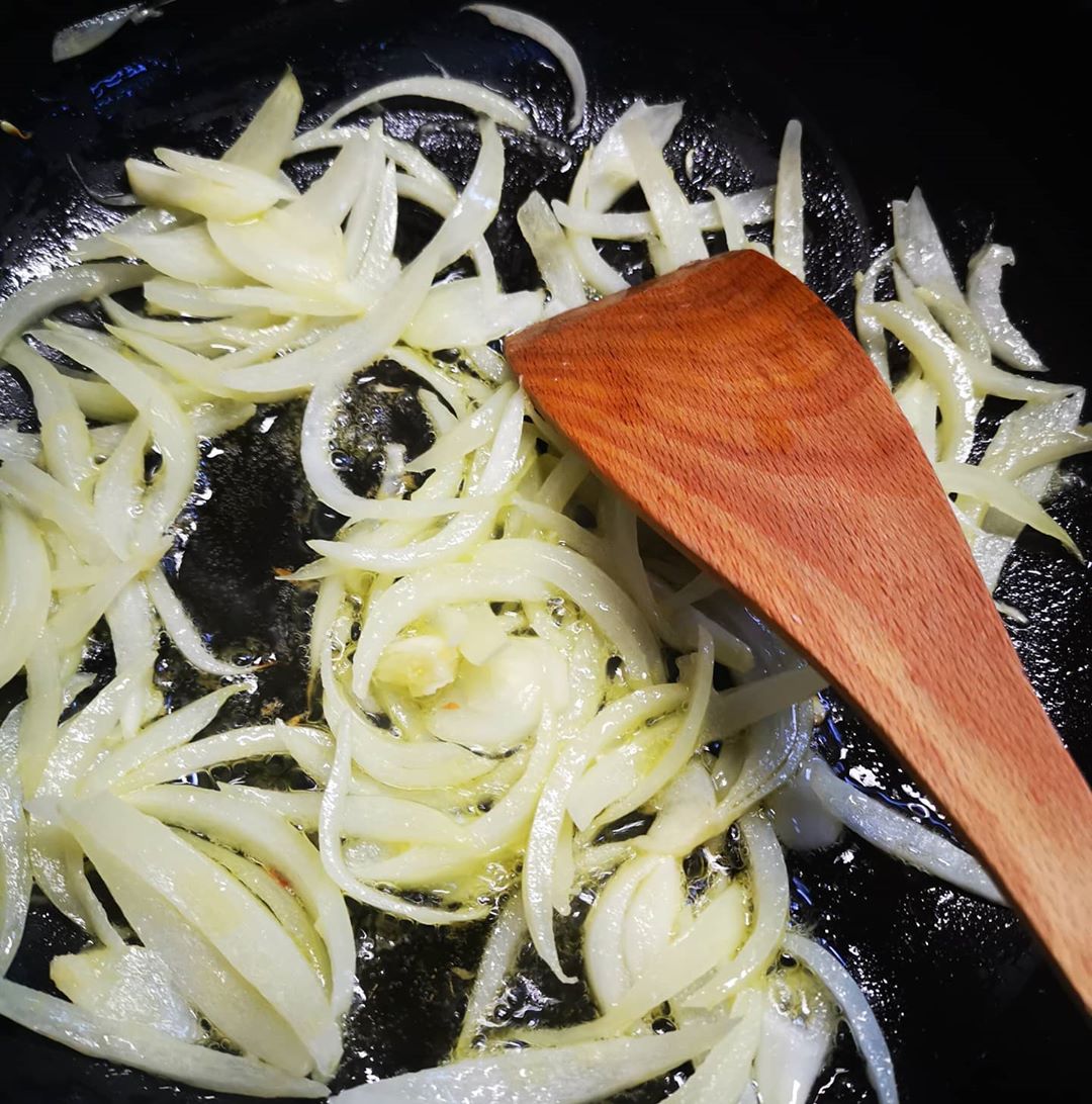 Pendant ce temps dans une poêle bien chaude faire revenir l’oignon émincé dans l’huile d’olive et le beurre. Quand les oignons sont tendre et coloré, ajoutez les fanes de radis préalablement nettoyées et essuyées. Faire revenir le tout 10 minutes. Ajoutez le miel et faire revenir encore quelques minutes en remuant. Ajoutez y le mélange crème/cantal et mélangez bien. Versez cette préparation sur la pâte brisée moutardée et enfournez pour 30/40 min en fonction de votre four.