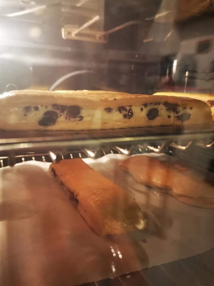 Passez un léger coup de rouleau pour enfoncer les pépites et raisins secs.