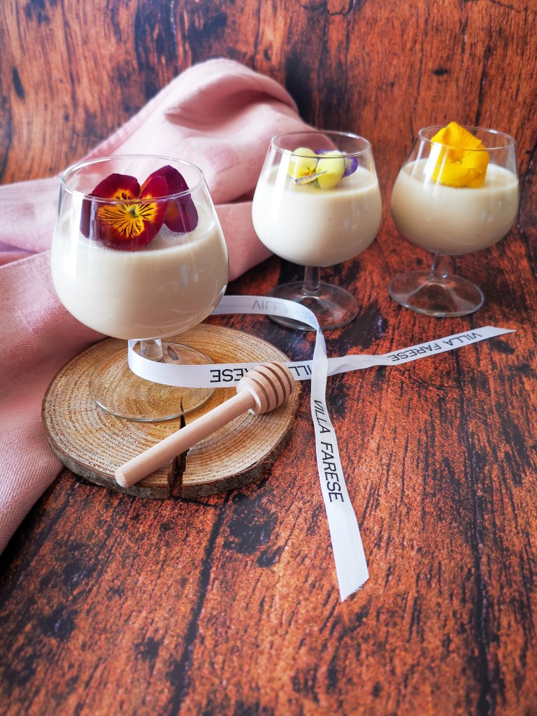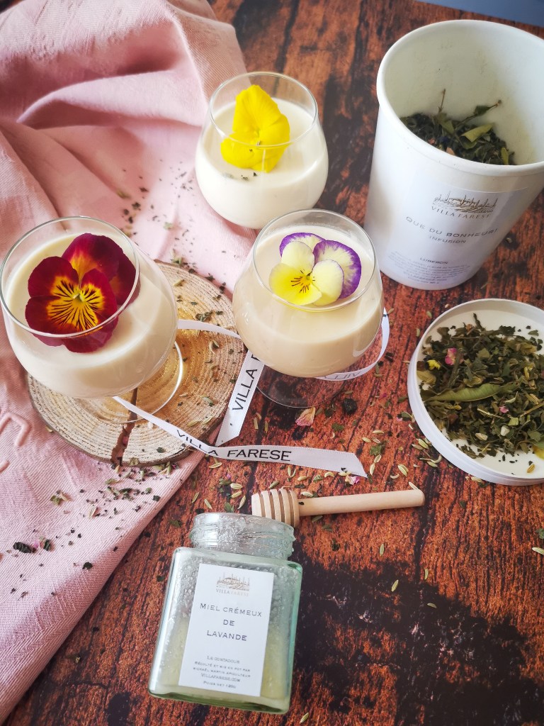 Hier, en humant mon infusion « Que du Bonheur » de chez VILLA FARESE et en dégustant avec son miel à la lavande, j’ai eu comme une envie de réaliser une gourmandise douce, sucrée, aux saveurs multiples et florales avec, en version Panna Cotta.