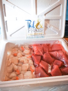 Il y a quelques semaines, j’ai eu la chance de gagner par tirage au sort lors du concours instagram de sourires et papilles un joli colis de chez Phil & frais. Il était composé d’un kg de noix de Saint-Jacques de Normandie et d’un kg de suprême de thon.