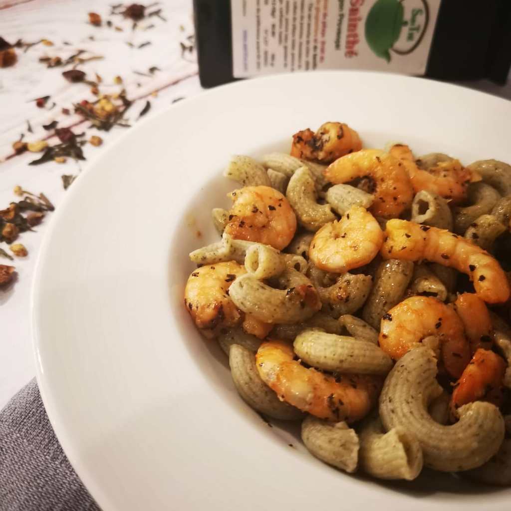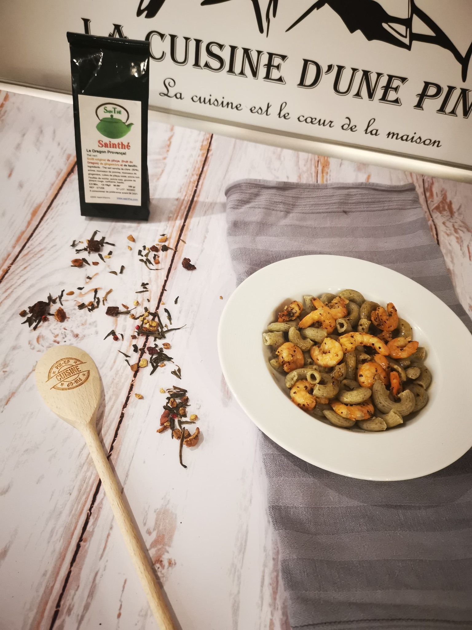 j’ai imaginé pour mon partenaire Sainthé une recette de Pennes avec leur thé vert « Le Dragon Provençal »