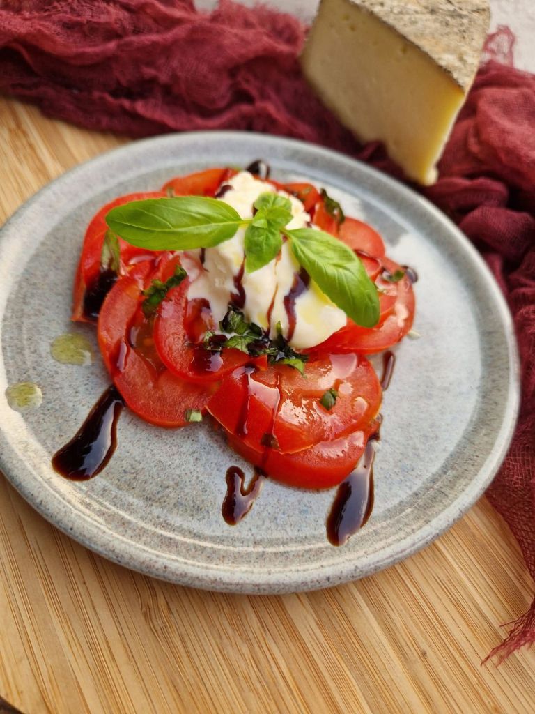 Servie avec un carpaccio de tomates, un filet dâhuile dâolive et une touche de crĂšme balsamique Ă la framboise, câest juste : WAOUH. đ„