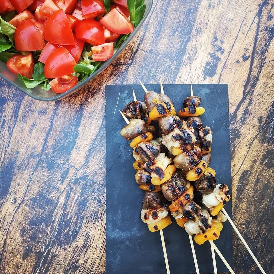 Aujourdâhui, je vous partage une recette que jâavais publiĂ©e il y a quelques Ă©tĂ©s et que jâadore refaire dĂšs que le soleil pointe : mes brochettes de cĆurs de canard au lard et aux abricots. Une recette express, pleine de caractĂšre, Ă la fois rustique et raffinĂ©e. Parfaite pour surprendre vos invitĂ©s ou tout simplement vous faire plaisir en duo ou en solo đ