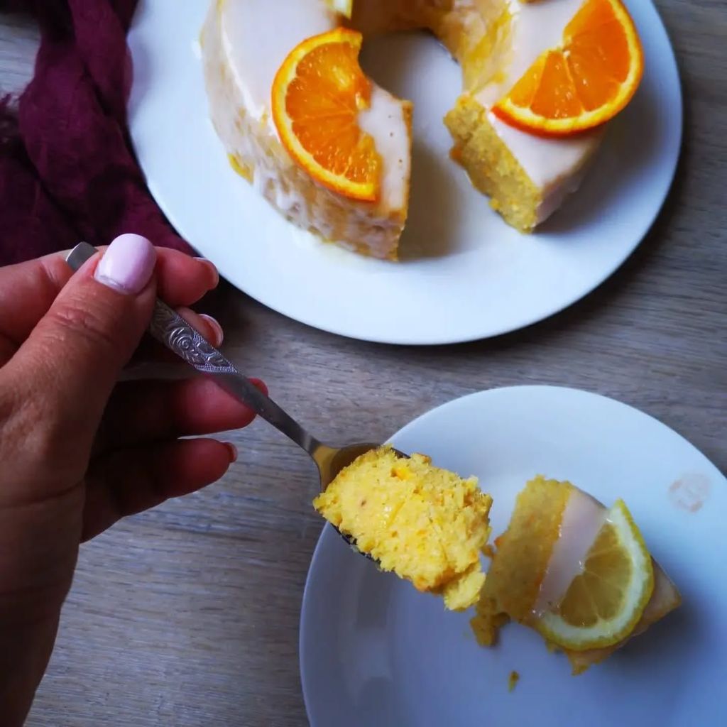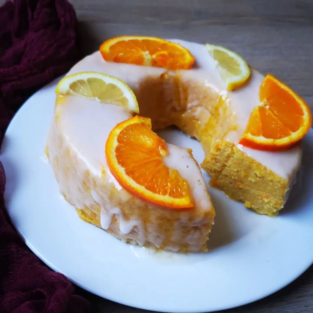 7. Laissez refroidir, puis glacez au citron et décorez de tranches d’orange et citron 🍋🍊