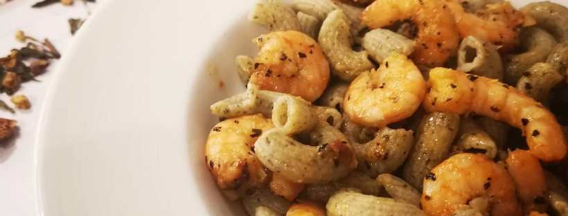 Pennes au thé vert « Le Dragon Provençal » et aux crevettes